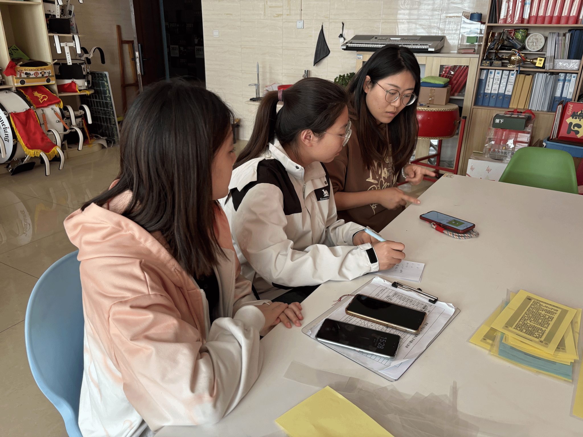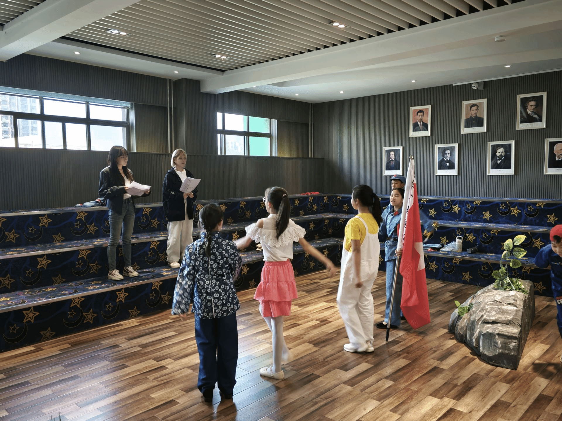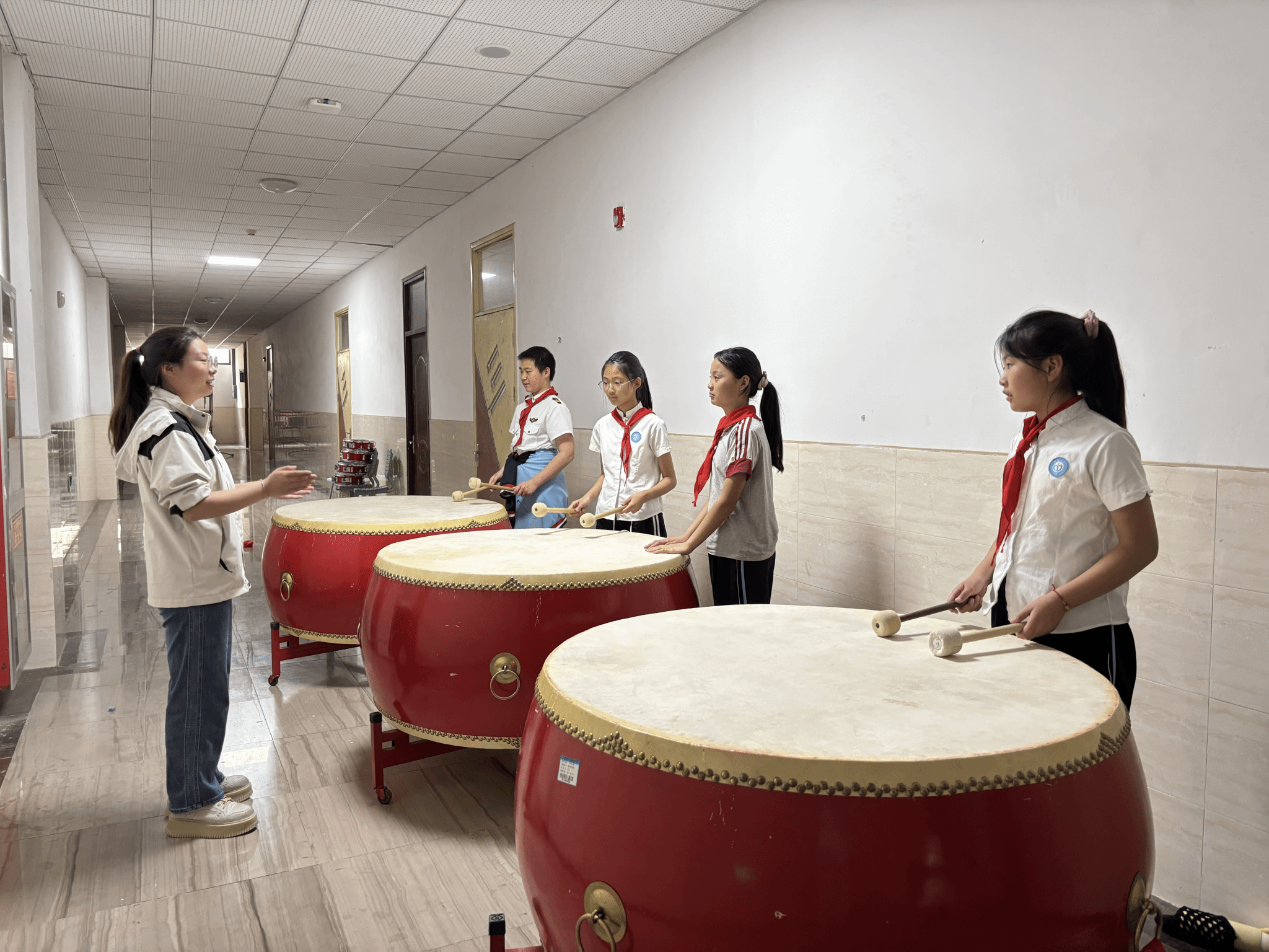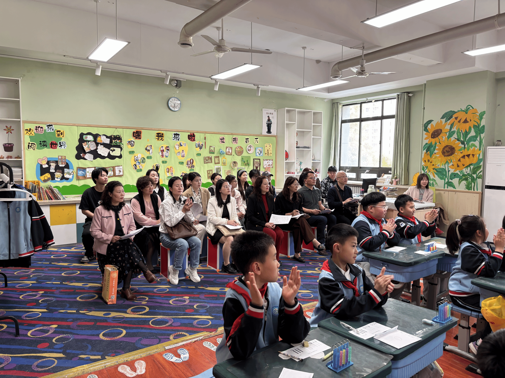 同学们非常珍惜这次难得的见习机会,主动投入,干劲十足。除了教学观摩,他们有的帮着老师们排练戏剧,积极参与集体展示与演出活动;有的指导孩子们进行打击乐练习;有的深入到年级组参加教研活动,帮助老师们布置走廊空间;有的观摩了美育类课程优秀案例,还有的担任学生合唱团等艺术社团的指导老师,为即将到来的“六一儿童节”、“学生毕业展演”等活动做准备。同学们还围绕课外活动、延时服务等环节,体验了从理论到实践的教学过程,助力中小学美育发展,获得了各个见习学校老师的高度赞扬。