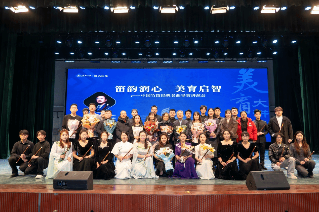 承办的“济大论坛·美育大讲堂”《笛韵润心 美育启智——中国竹笛名曲导赏》在学校大礼堂举行。山东艺术学院二级教授、硕士研究生导师郝益军教授应邀担任主讲,500余名师生齐聚一堂,一同走进竹笛艺术的审美意蕴与文化根脉,在聆听与体验中感受中华优秀传统文化的恒久魅力。