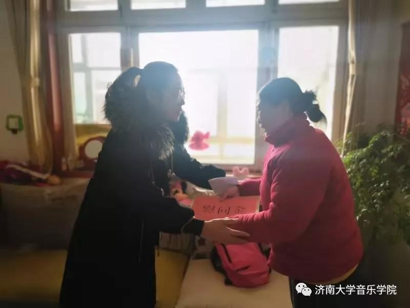 领导和老师们的到来让平日寂静的小院热闹起来,他们询问了父母近来的身体状况和家里经济情况,鼓励我扎实专业,凭借自己努力早日为家里减轻压力。老师们亲切的话语和关心的身影深深留在我们一家人的心里,让我们心里暖暖的。