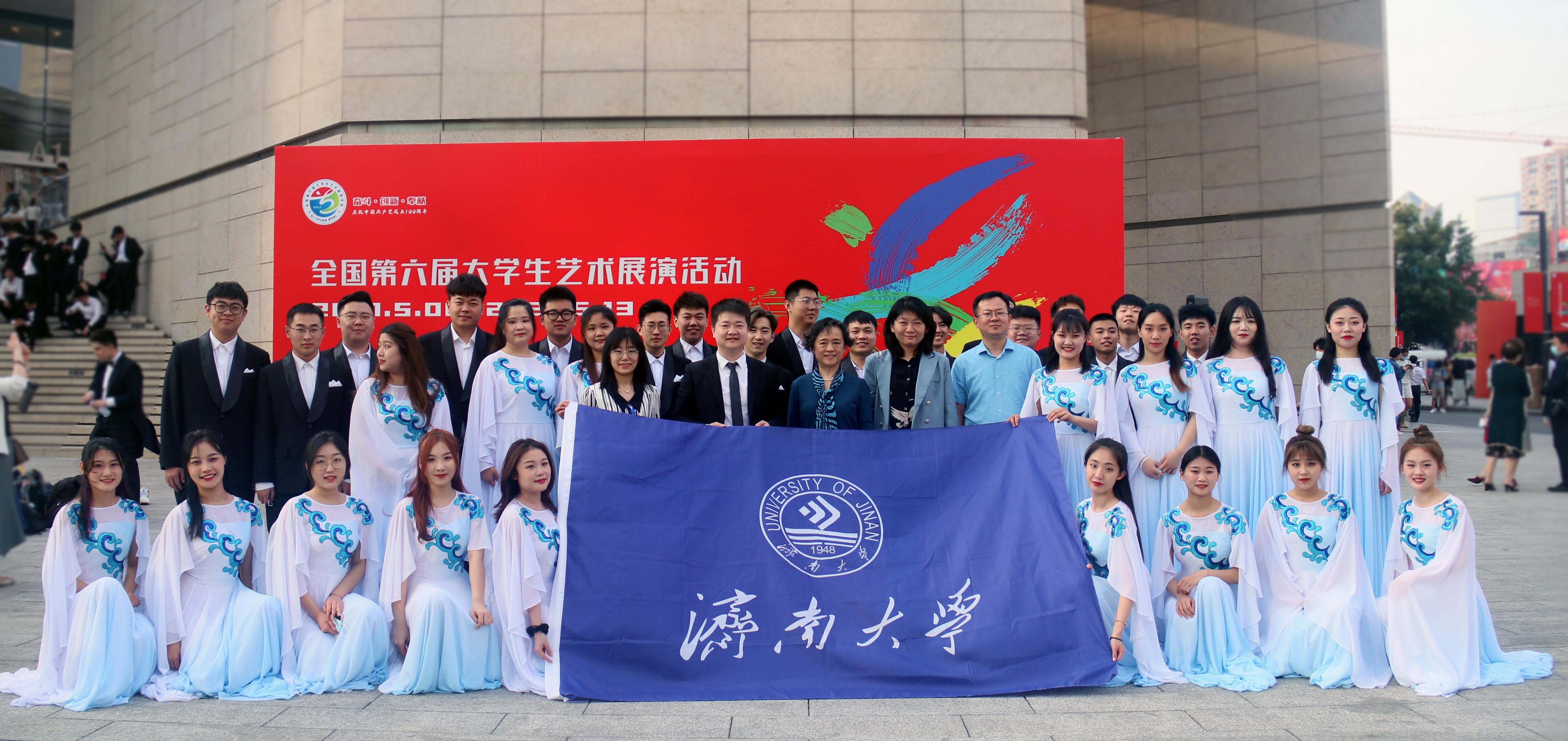 大学生的精神风貌,以实际行动向党的百年华诞献礼。山东省教育厅副厅长孙晓筠一行对参演学生进行慰问,她鼓励学生保持昂扬的精神状态,同时希望同学们要利用好参加展演的机会文化修身,艺术修心,不断提升综合素质。