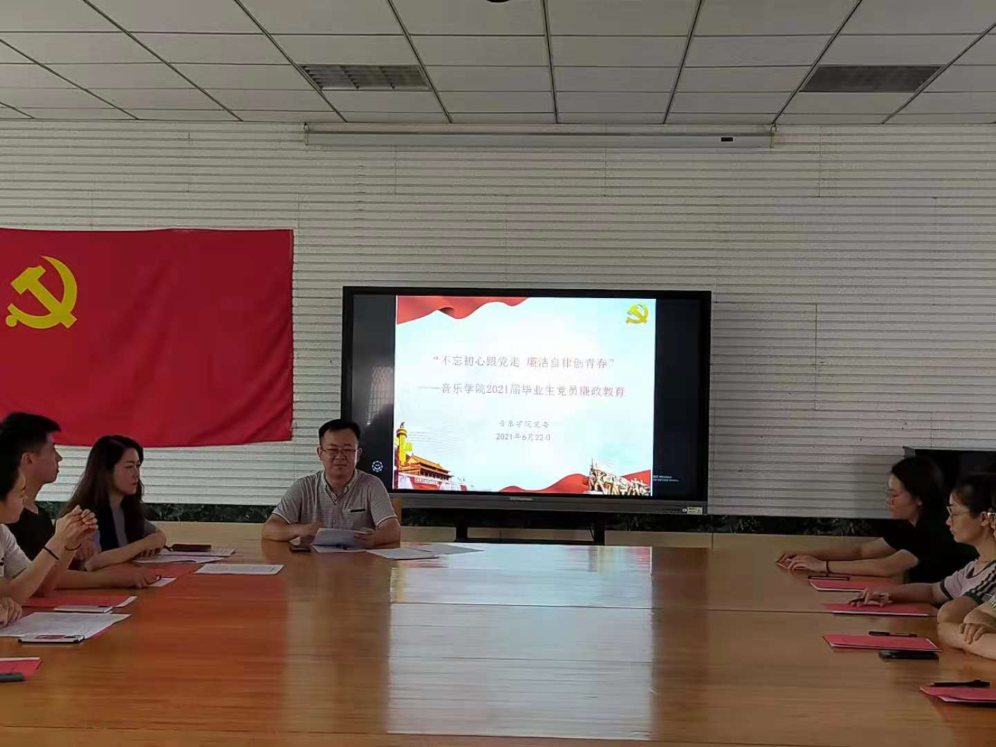 开展“不忘初心跟党走,廉洁自律创青春”为主题的毕业生党员廉政教育活动,学院党委副书记袁海占及全体毕业生党员参加会议,会议由支部书记马媛老师主持。