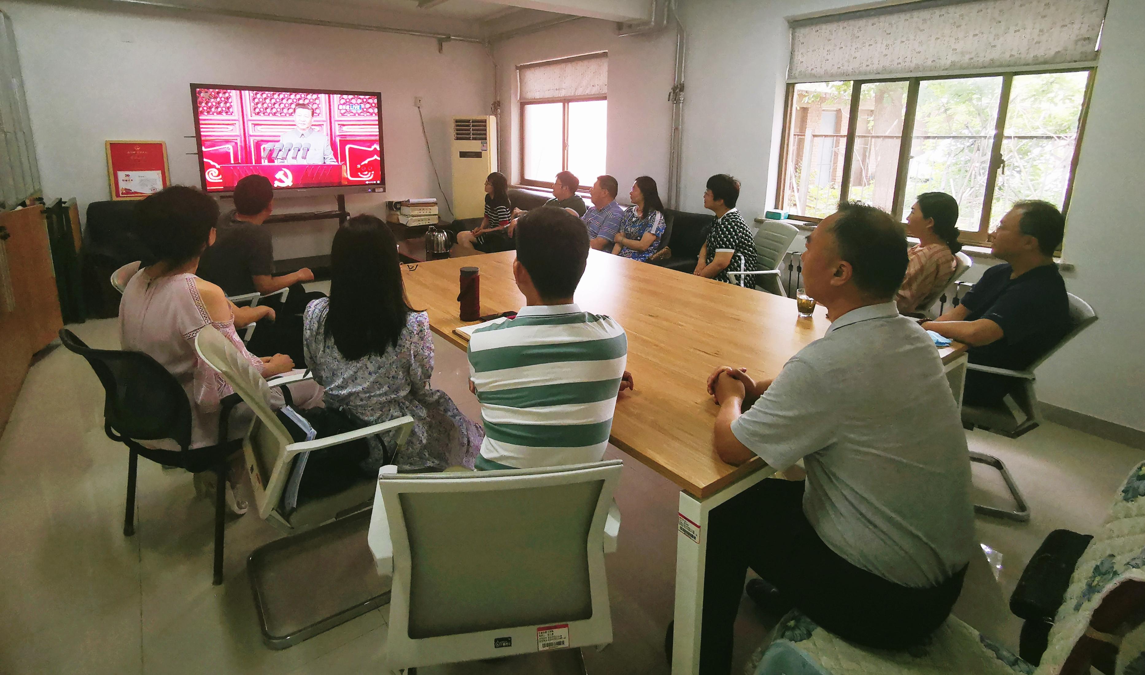组织各支部分别在预设会场准时收看中国共产党成立100周年大会实况直播。会后,各支部结合自身实际展开热烈讨论,迅速掀起了学习贯彻、推动落实的热潮。
