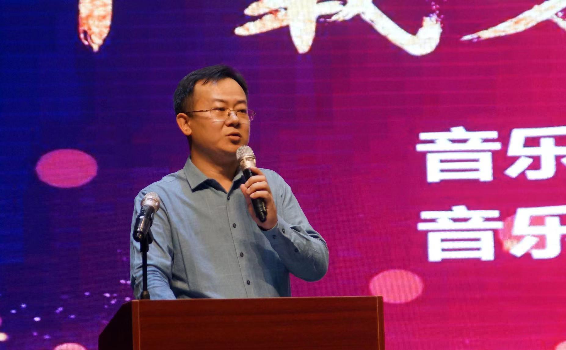 优秀共产党员、器乐系教授董智渊老师代表学院教师发言。他分享了从教以来亲身感悟学院跨越式发展背后的艰辛历程,展现了一代老教师对学院对岗位无私奉献的高尚师德和对教书育人事业的无限热爱和执着坚守。