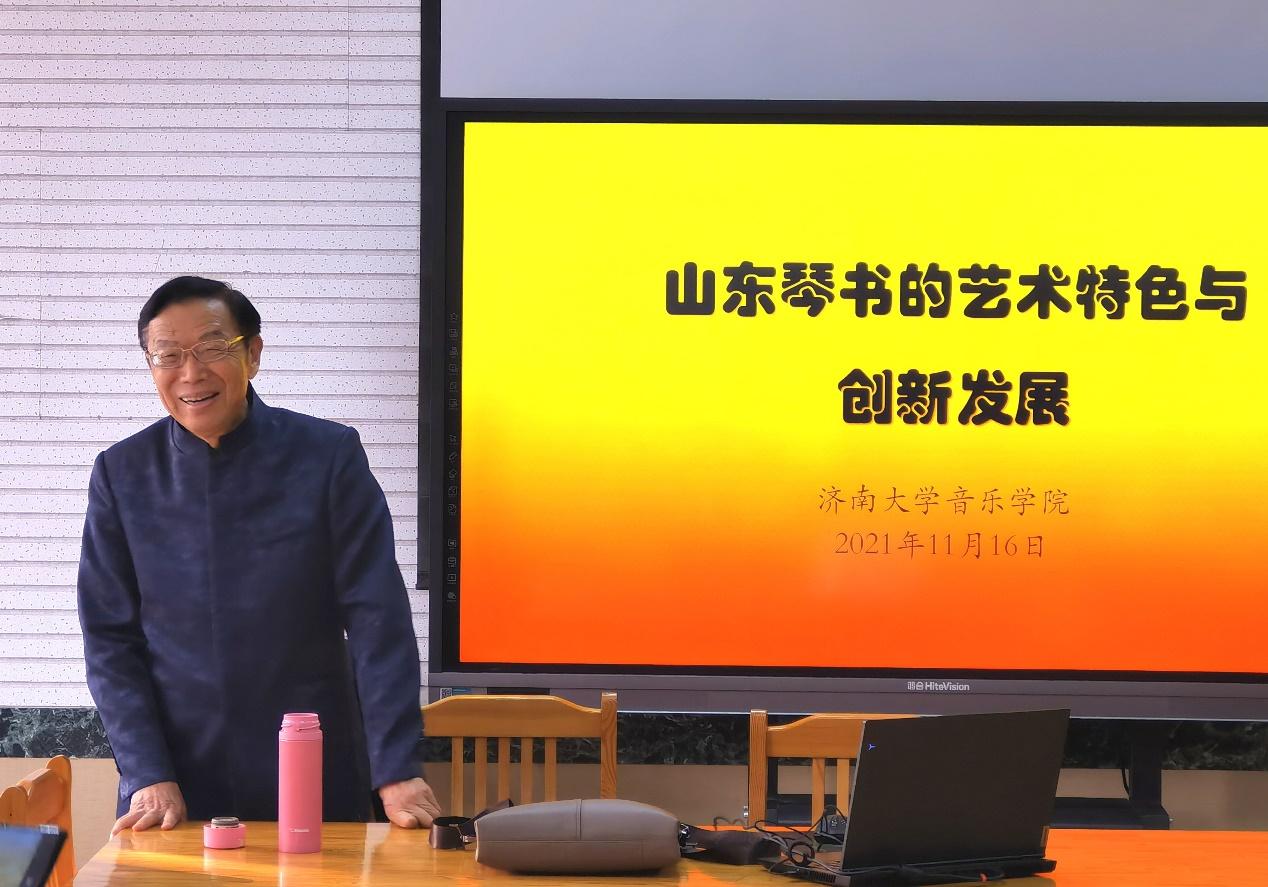 举办了《山东琴书的艺术特色与创新发展》学术讲座。讲座采取线上、线下相结合的形式进行,由音乐教育系系主任杨瑞教授主持,郑中院长、王建成副院长及音乐教育系全体教师、2021级研究生及部分本科学生代表参加了此次活动。