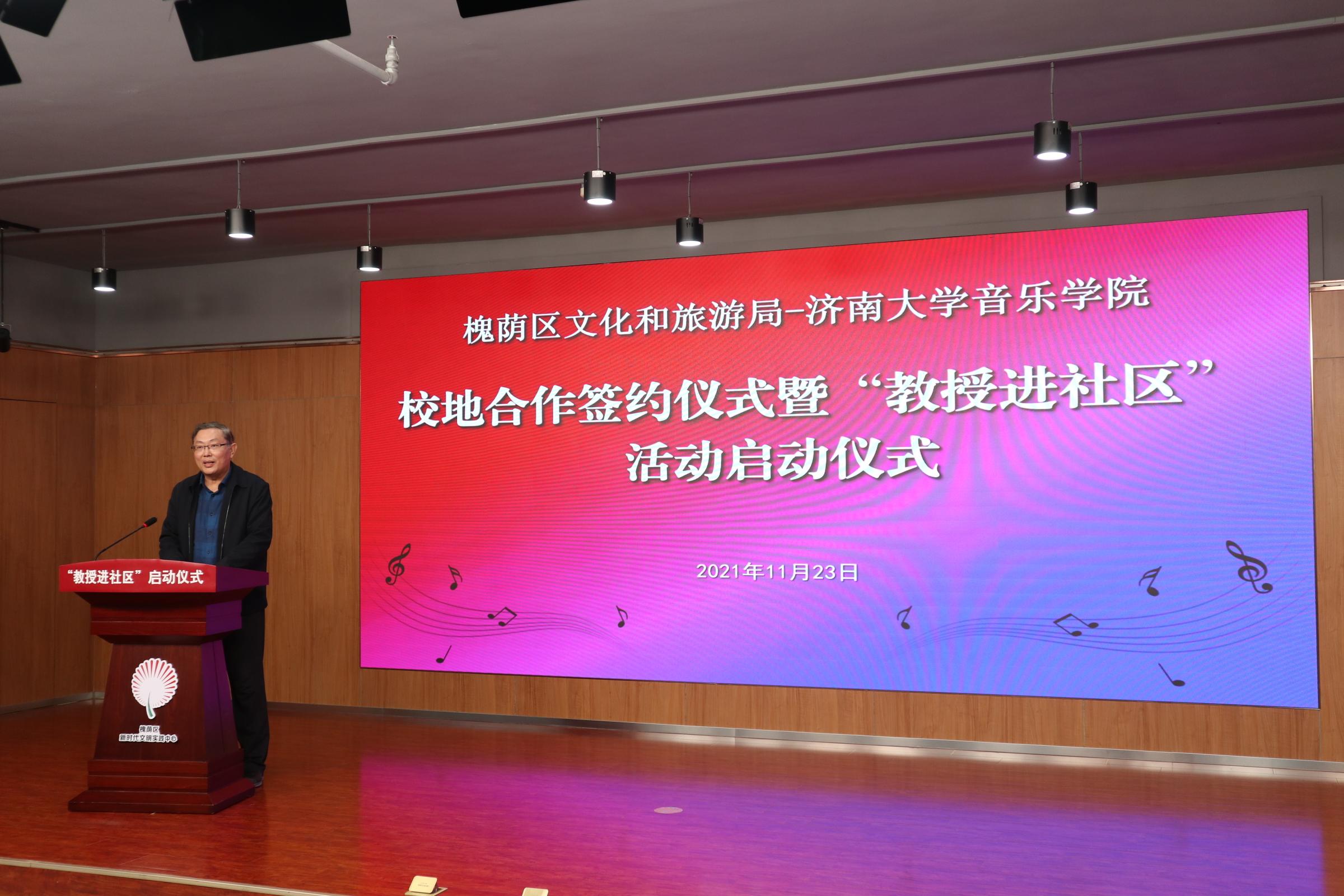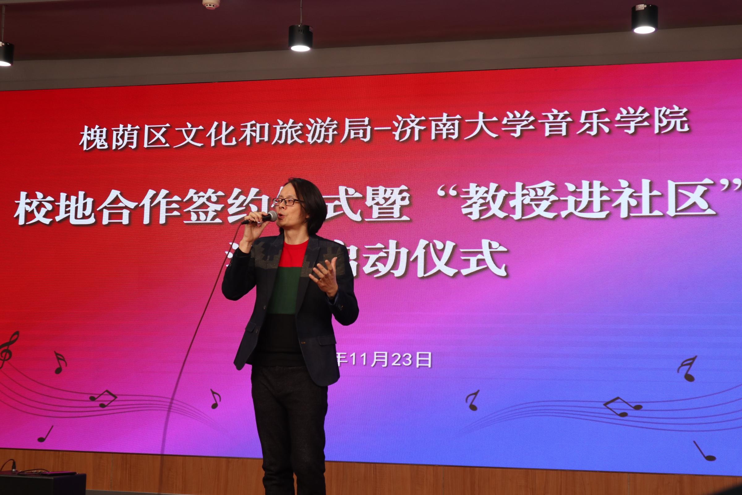 仪式上,济南市槐荫区文化和旅游局局长岳仁强在致辞中对学校表示衷心感谢,他介绍通过校地合作开展“教授进社区”活动旨在加快实现槐荫“文化兴”,由性爱电影
