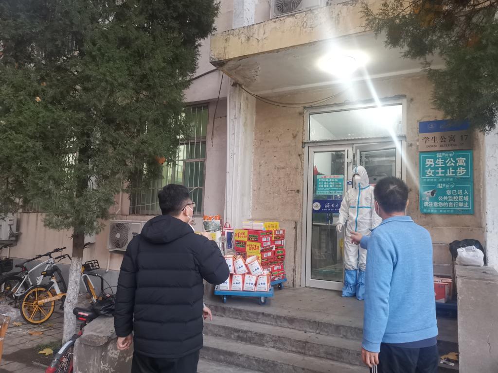 每个人都是防疫责任人,在宿舍封闭管理状态下,同学们都积极配合学校防疫工作,自觉遵守防疫要求。部分同学还积极参与志愿工作,宿舍长、楼层长主动承担责任,倾听同学们的心声,维护宿舍和楼层秩序。在遵守疫情防控政策的前提下,志愿者们分发餐食、运送物资、提醒大家进行核酸检测等。