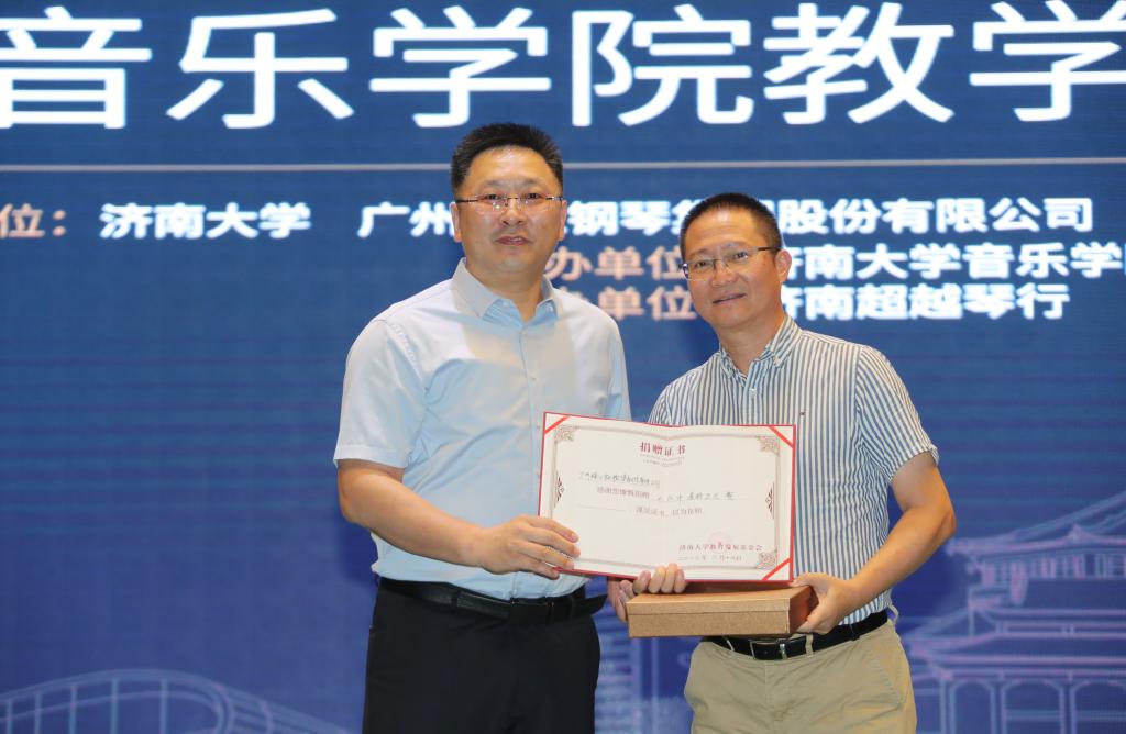 合作发展处处长、教育发展基金会办公室主任卢旺为广州珠江钢琴集团股份有限公司颁授捐赠证书和纪念品。性爱电影