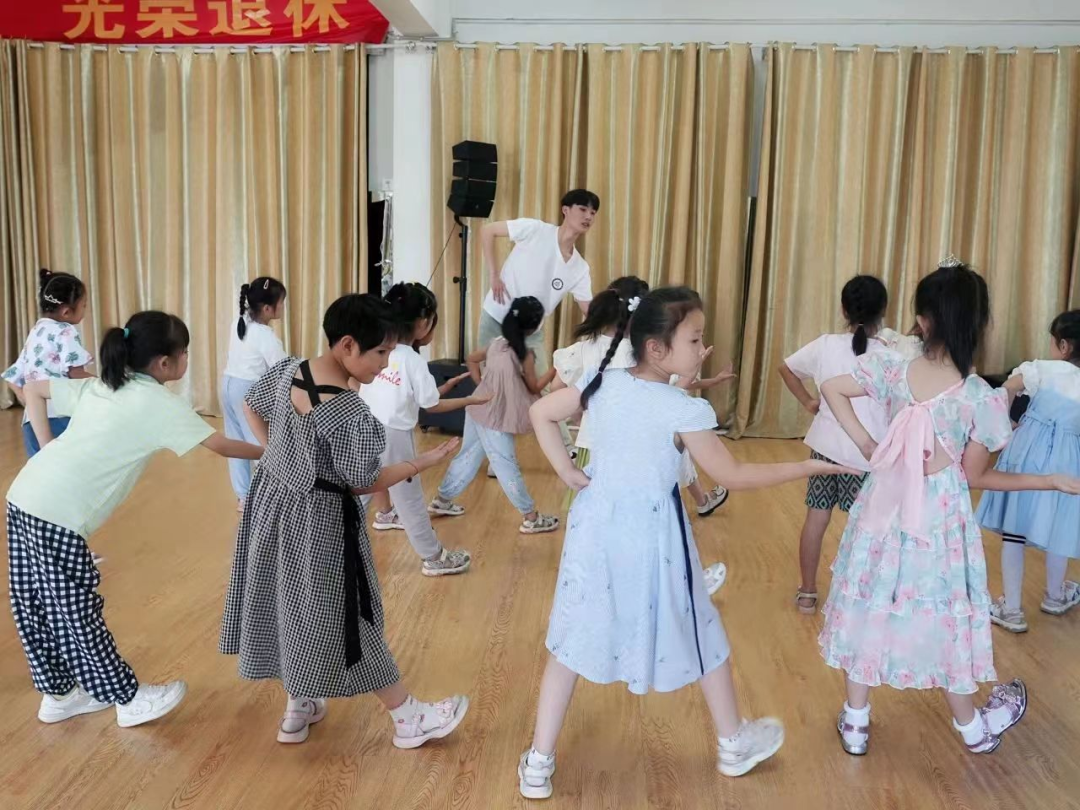 我们永远在前进,用青春画出音符,用汗水奏响乐章。在教学结束之后,志愿服务队举办了教学成果的汇报演出,小朋友们用稚嫩的声音和最认真的态度为大家展示了学习成果。合唱作品《虫儿飞》、《勇气大爆发》以及舞蹈作品《童话梦想家》的完美展现让我们无比感动,志愿服务队带来的器乐合奏《荷塘月色》、小号独奏《主题变奏曲》以及舞蹈作品《藏族舞蹈》也将氛围推至高潮。此次汇演既展现了志愿服务队的教学成果,又给予了小朋友们展示自我的平台。汇演的圆满成功离不开祝阳镇政府和中心幼儿园的大力支持,也充分展现了祝阳镇政府与当地教育机构的深刻联系以及为乡村振兴做出的巨大贡献。