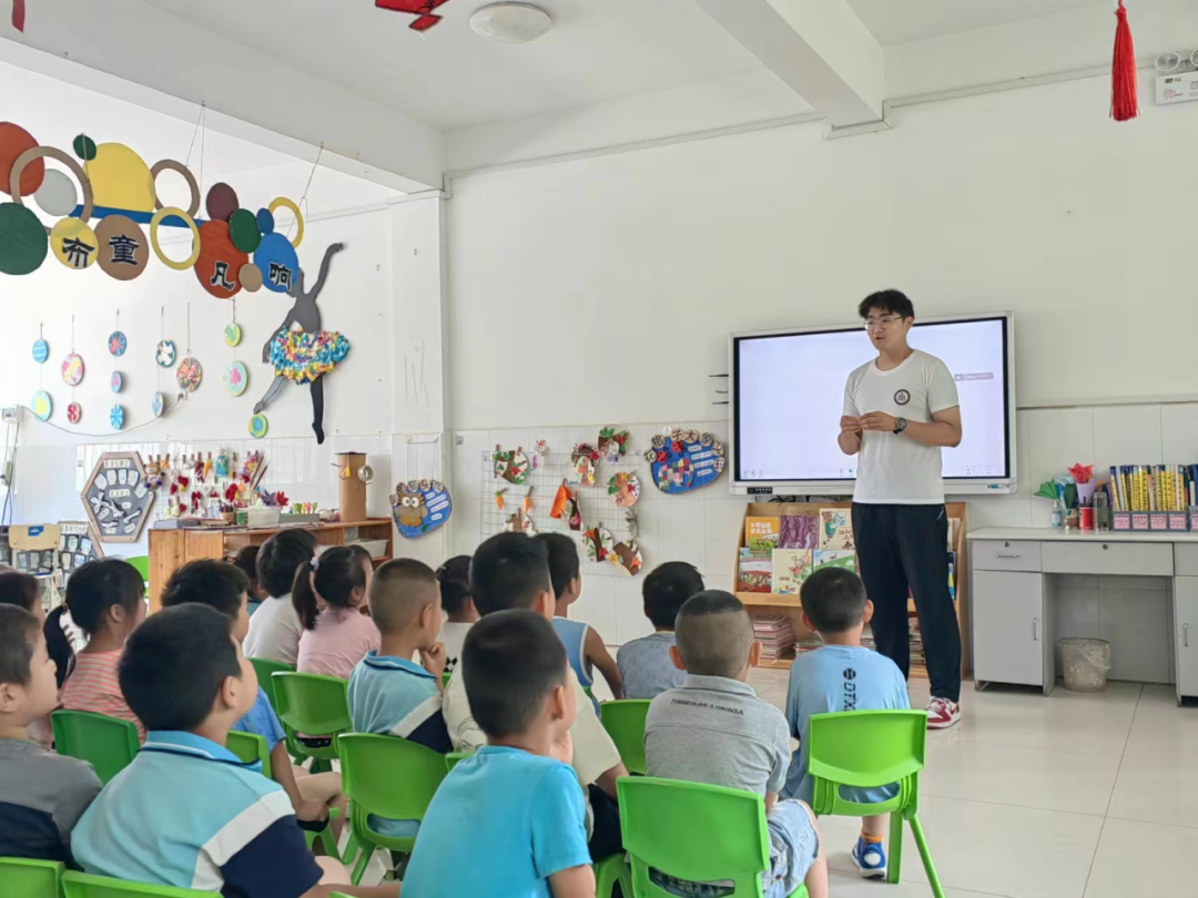 夏日骄阳拦不住青春的热忱,孩子们的笑容如同夏日凉爽的冰棍,将心灵沁的清清凉凉。志愿服务队在与祝阳镇镇政府进行对接之后,来到祝阳镇中心幼儿园,根据园长介绍,同时根据小朋友们的实际情况,志愿服务队制定了适合小朋友们的上课计划。经过与班主任的沟通和学习后,志愿服务队以“课程即游戏”的方式开设了基本乐理、合唱、器乐赏析舞蹈等课程。随着与小朋友们的深入交流与接触,我们不断改进,为小朋友们提供一个有特色、好吸收的趣味课堂,助力幼儿园一班一“特色”,一区一“探索”计划,将乡村文化振兴融入到行动中,不断为美好乡村建设与振兴添砖加瓦。