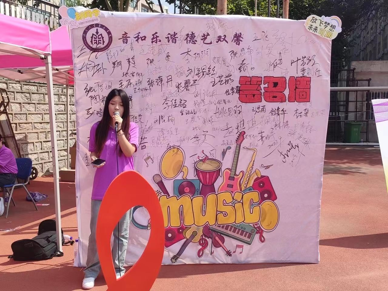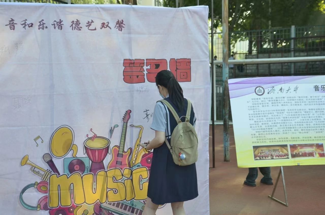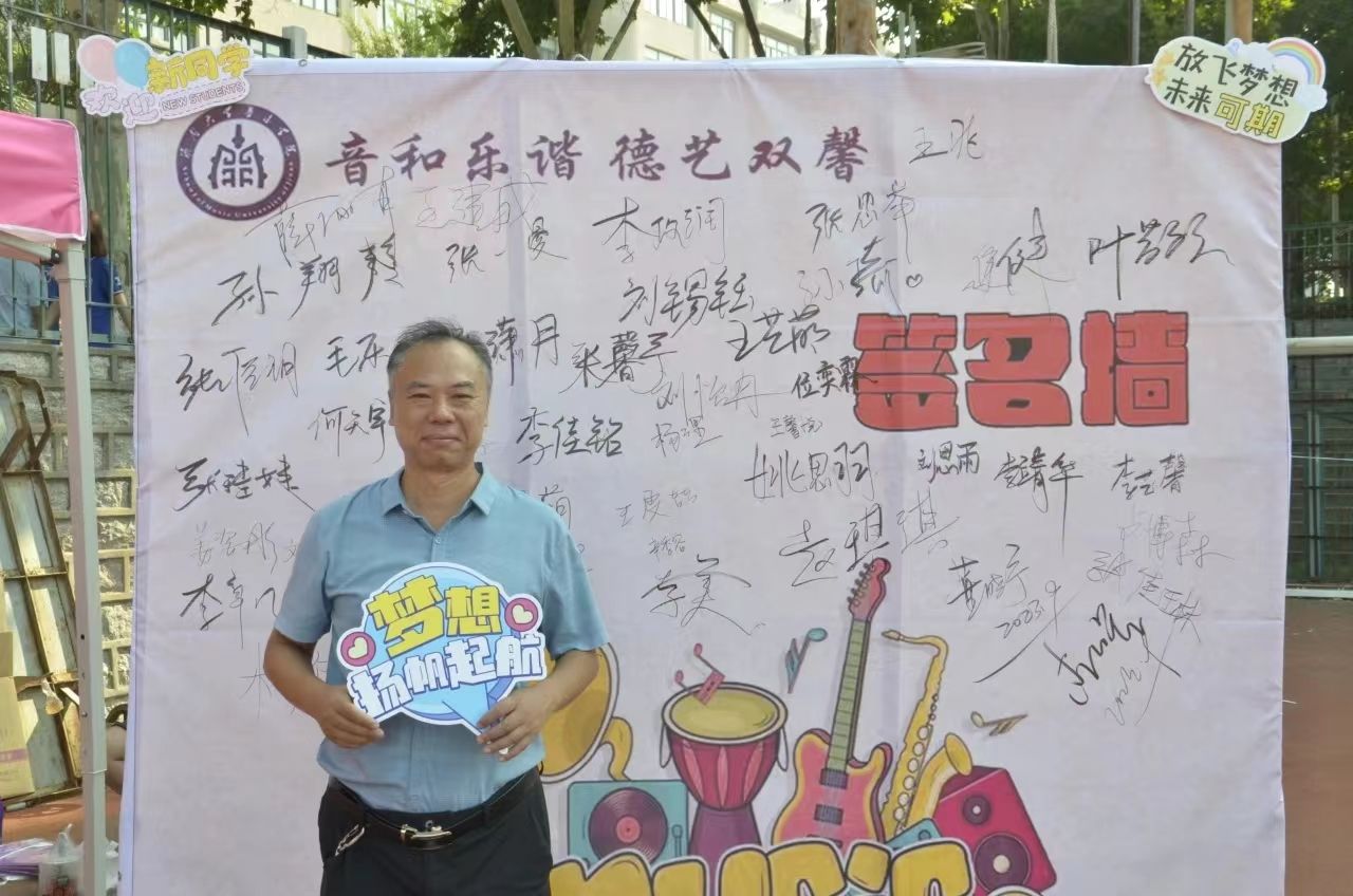 镌刻期望,传递温暖。围绕“音和乐谐 德艺双馨”主题,学院设计专属签名墙,供老师与学生参与签名活动,期间学院领导以及学生会学生代表手写寄语,向新生传达学校、学院的关怀和温暖。