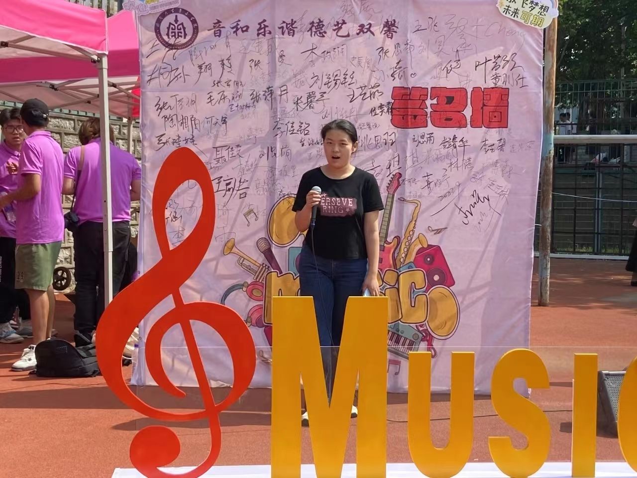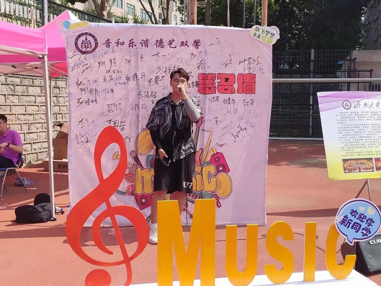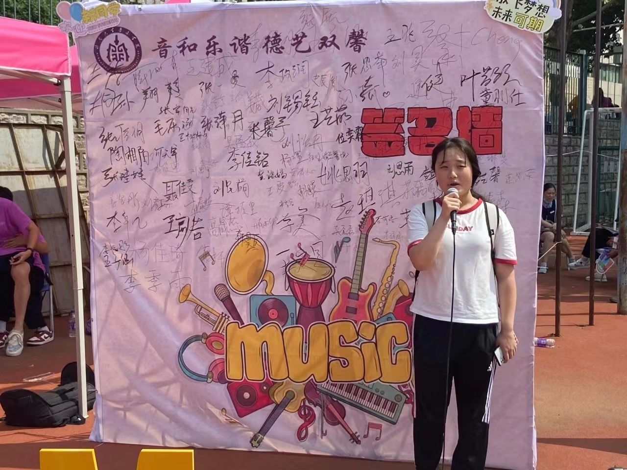 镌刻期望,传递温暖。围绕“音和乐谐 德艺双馨”主题,学院设计专属签名墙,供老师与学生参与签名活动,期间学院领导以及学生会学生代表手写寄语,向新生传达学校、学院的关怀和温暖。