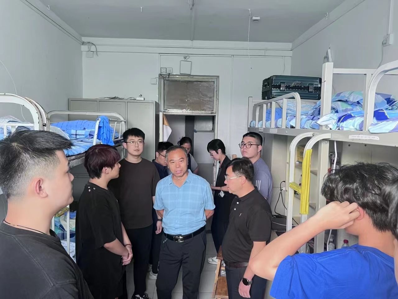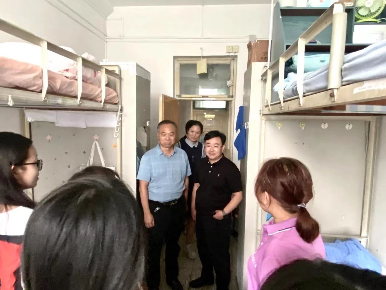 心系同学,师生温情。迎新过后,党委书记孙翔玲,副院长王建成,党委副书记董晓宁和各年级辅导员、新生班主任走进新生宿舍,看望刚刚报到的新生,听取学生和家长们对迎新工作和宿舍管理服务的意见建议,并与新生们亲切交谈,对他们的到来表示欢迎,帮助新生积极融入校园生活,同时就安全等问题进行强调,嘱咐新生提高安全意识、杜绝安全隐患,共同营造温馨、和谐的宿舍文化,帮助新生尽快适应大学生活。