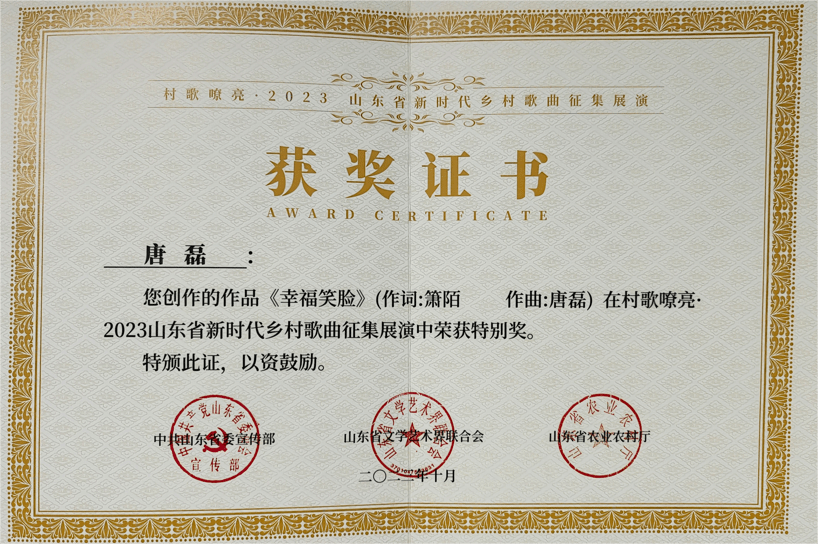 近日,在由中共山东省委宣传部,山东省山东省文学市术联合会,山东省农业农村厅举办的村歌嘹亮·2023山东省新时代乡村歌曲征集展演中,由箫陌作词、性爱电影