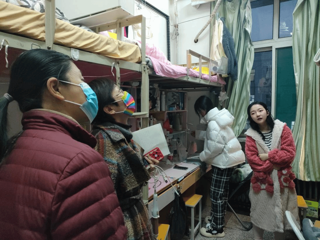 组织开展公寓安全卫生检查工作,学院党委副书记董晓宁带领全体辅导员深入走访学生宿舍,了解学生生活实际。
