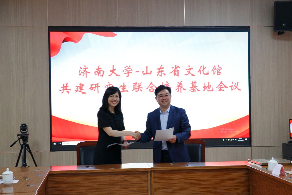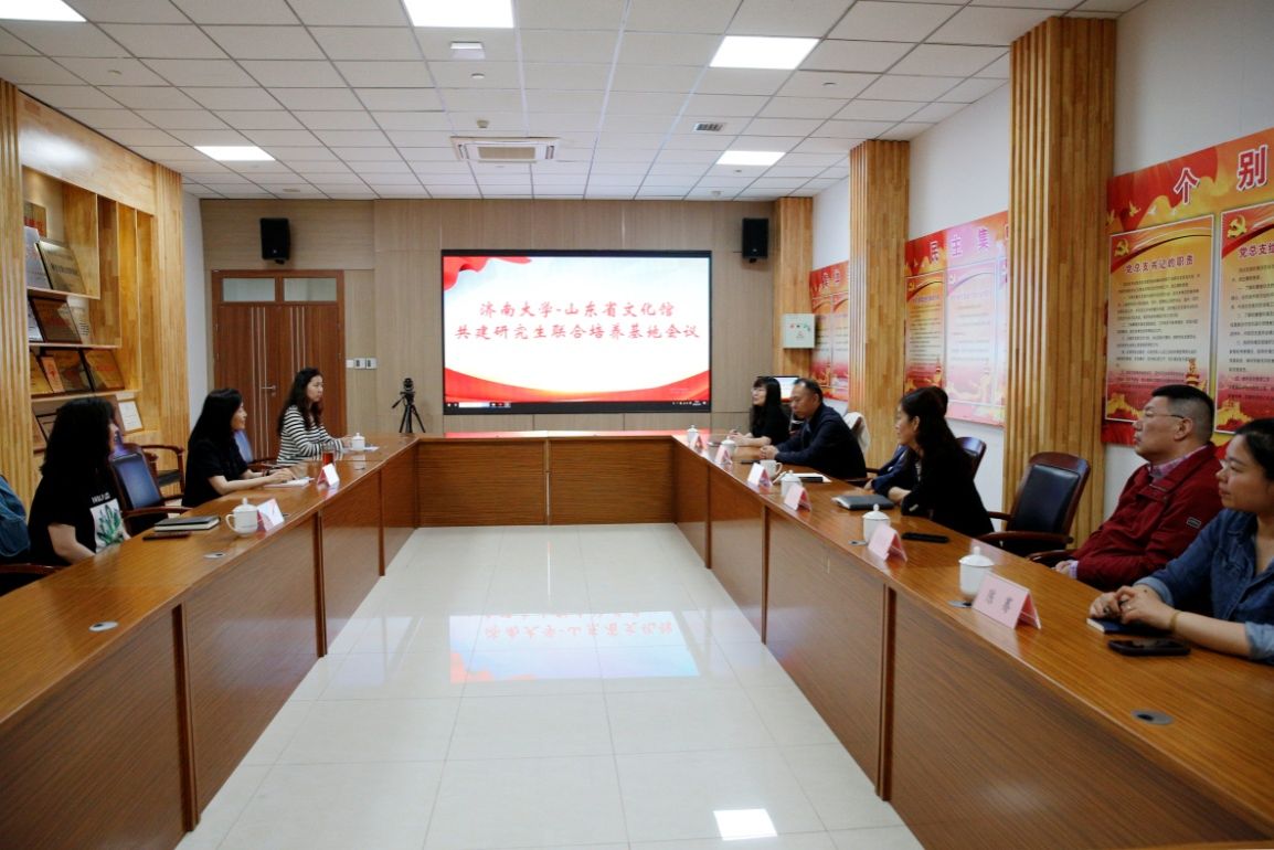-山东省文化馆研究生联合培养基地揭牌。随后,与会人员就研究生联合培养基地之后的建设进行交流与研讨。孙翔玲表示,非常感谢山东省文化馆长期以来对学院研究生人才培养工作的大力支持。相信此次研究生联合培养基地共建,将对学院在深化研究生培养模式改革、强化研究生实践创新能力、提高研究生培养质量等方面起到重要的推动作用。杨立洁表示,研究生联合培养基地是培养专业学位研究生创新实践能力、服务社会能力的重要平台,研究生院全力支持基地的建设,双方可在导师聘请、研究生培养、实习实践等方面加深交流与合作。揭牌仪式结束后,参会人员在山东省文化馆各场馆进行实地考察。