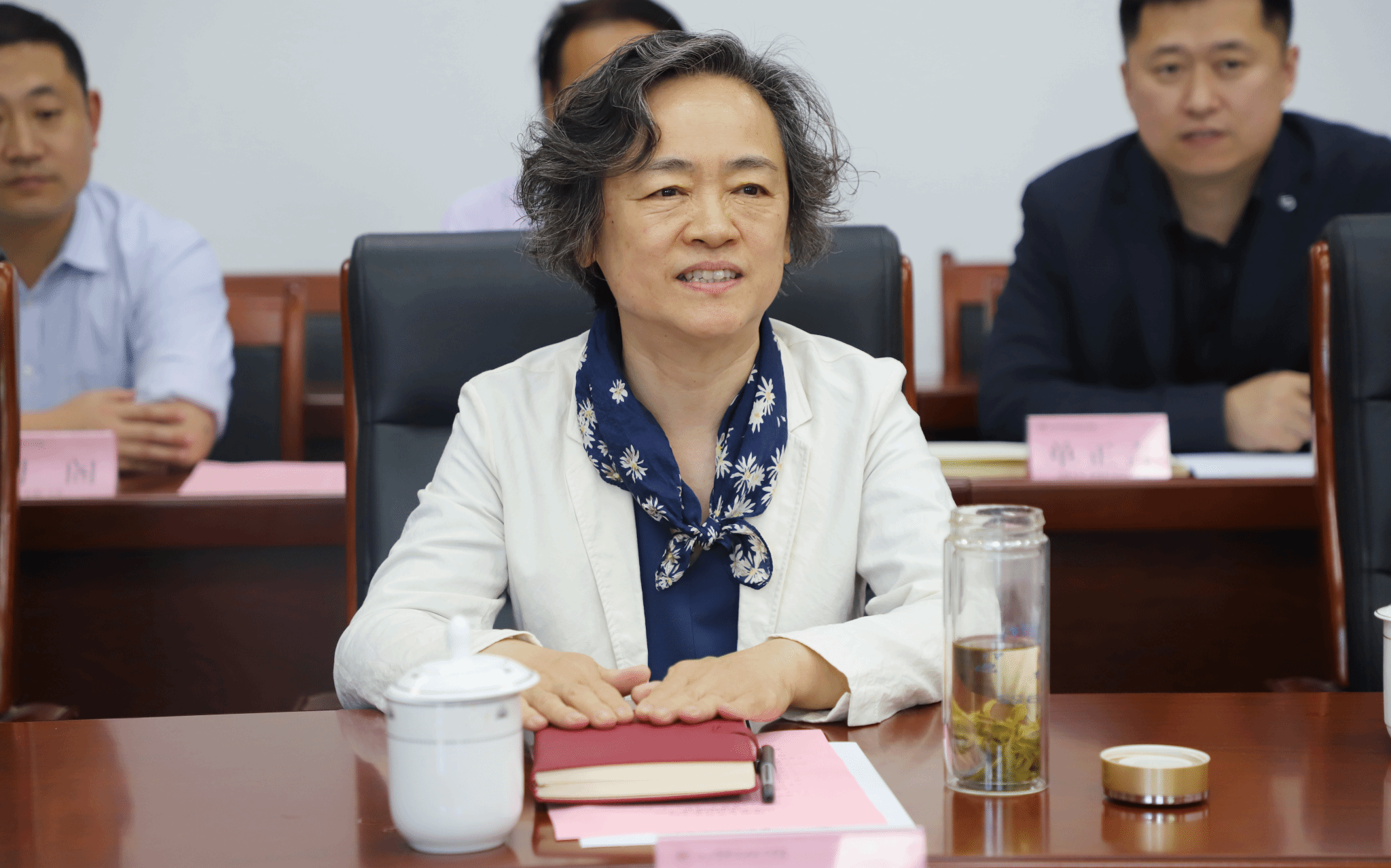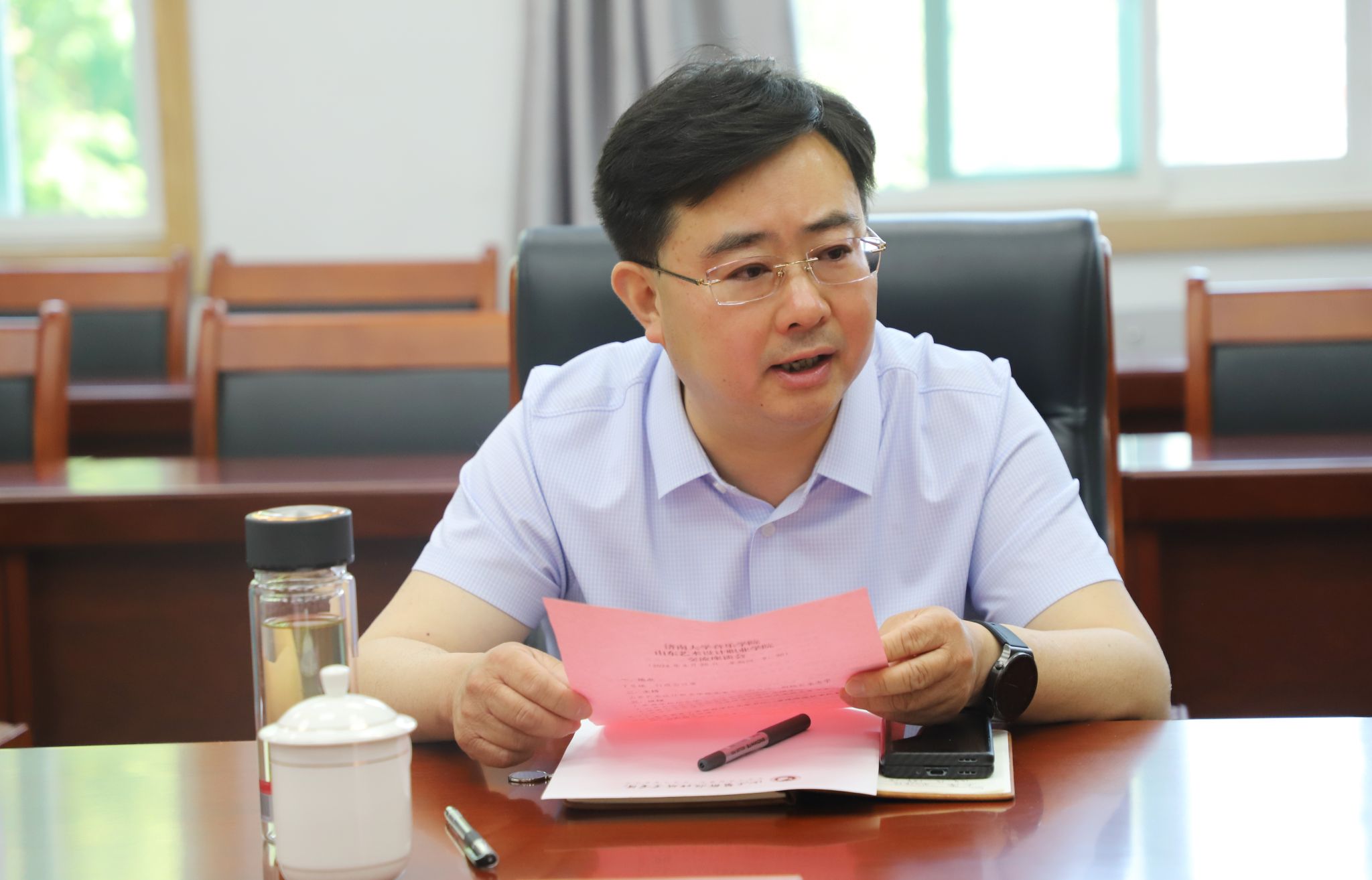 党委书记孙翔玲,党委副书记、副院长董晓宁,舞蹈系主任王海潮,毕业生辅导员宋莉璐一行4人赴山东艺术设计职业学院交流座谈。山东艺术设计职业学院党委书记张硕秋、常务副校长张维浩、党委常务副书记李志宇、副校长孙立明以及相关部门和学院的负责同志参加活动。