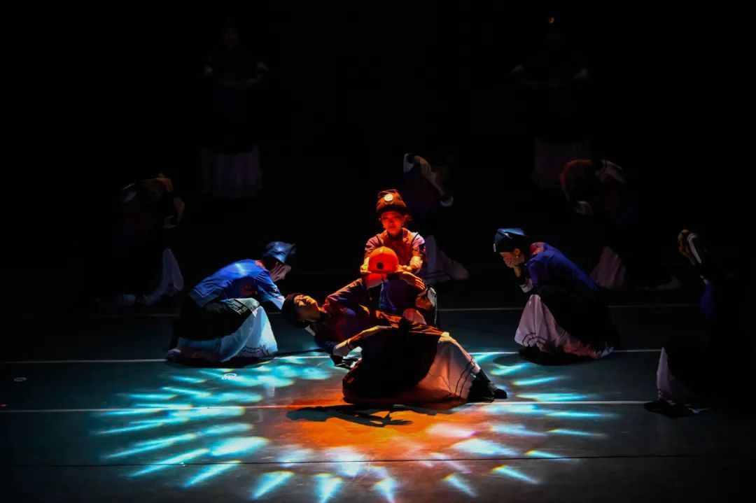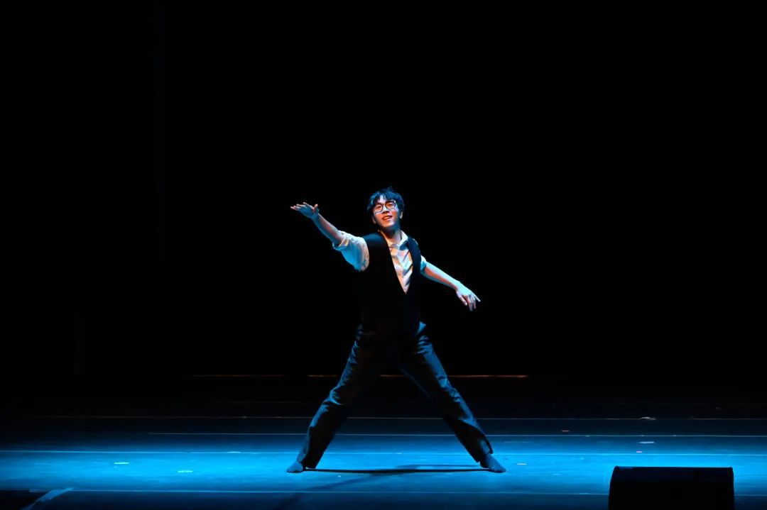 四位表演者在光影交织的舞台空间中,以舞蹈为笔、心灵为墨,绘制出令人赞叹的画面。他们的舞步与情感深度相互融合,深入观众的心灵,为观众带来了视觉与情感的双重盛宴。这展示了学院在教学中对学生综合艺术素养和情感共鸣能力培养的成果。学生们在合作表演中学会了相互配合,在舞台上展现了独特的光彩,并展示了卓越的舞台掌控力。