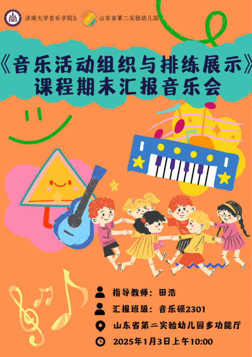研究生得到更高质量、更有特色的发展,进一步推动协作类课程与开放型实践课程,在本学期开设的《音乐活动组织与排练展示》课程中,田浩老师带领23级研究生走进山东省第二实验幼儿园进行为期一学期的教学实践,并在2025年1月3日联合山东省第二实验幼儿园成功举办课程期末汇报音乐会,性爱电影