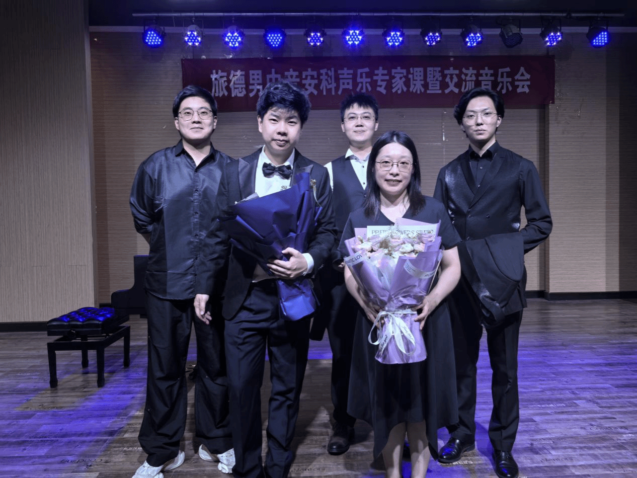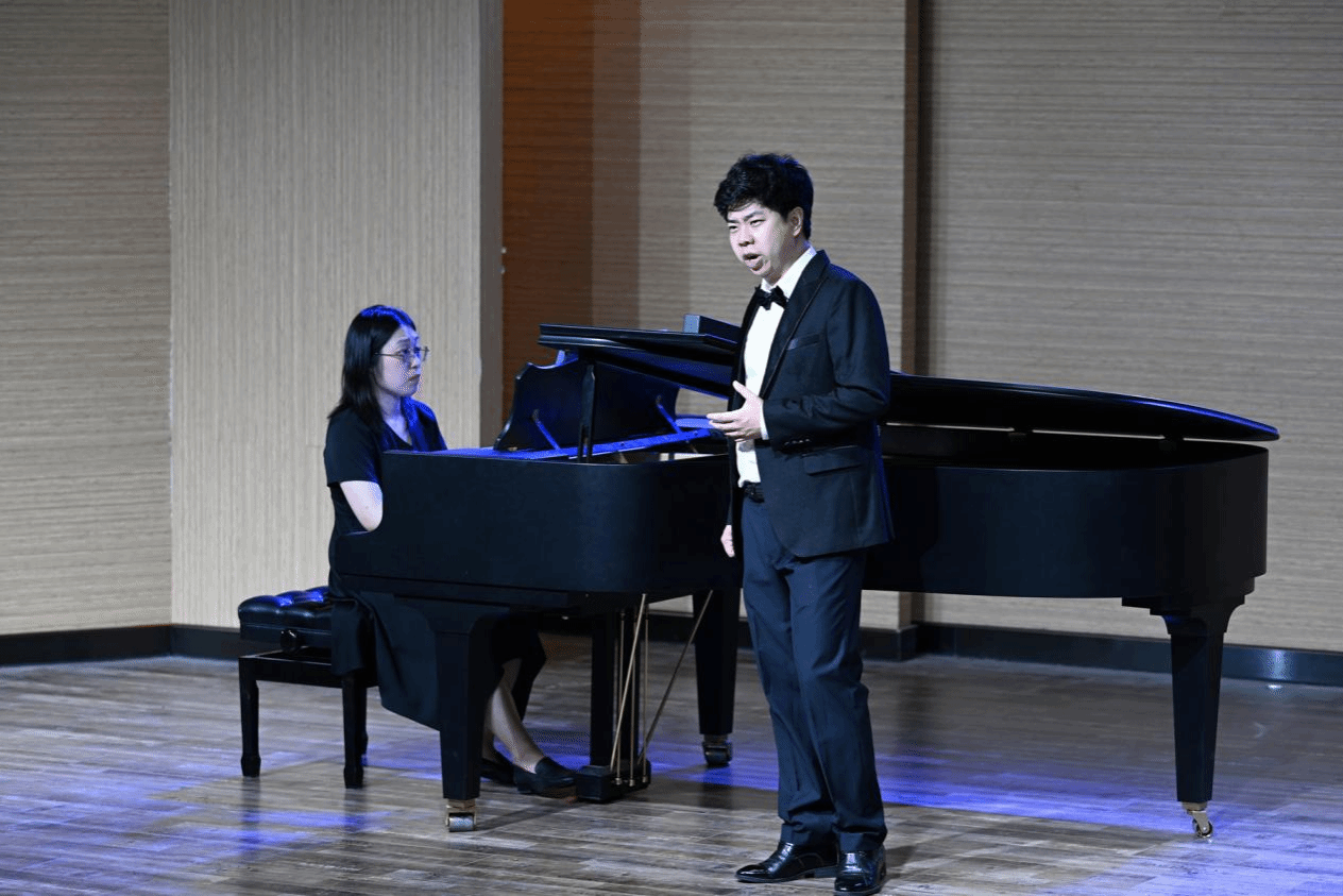 七位同学带着上午课堂所学登台,从语言雕琢到声音技术的成果,在琴声与歌声交融中细腻呈现。他们以饱满状态演绎不同风格作品,青涩却充满热忱的表现获现场热烈反响。下半场由安科老师携优秀学子王昱辰、徐逸翔、张丰韬接力亮相。三位学子声线各异,却同承师艺精髓——或深情演绎歌剧选段,或展现国际赛事获奖曲目。安科老师压轴献唱的德国艺术歌曲,更以旅德生涯积淀的原语言质感与情感深度,将声线控制与作品内涵推向极致。歌声与琴声交相辉映,将音乐会氛围推向高潮,带来兼具专业性与感染力的视听盛宴。