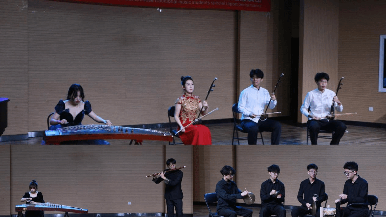 第一届中国传统音乐学生专场汇报演出在二教101音乐厅举行。本场音乐会由张雪骏老师指导排练与节目导聆,理论系、器乐系、流行系、调律系师生与表演。