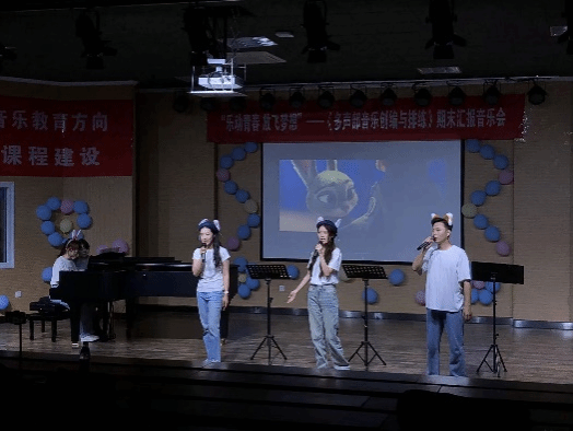 最后,音乐会由师生共同演出三声部合唱,在动画片《寻梦环游记》主题曲《Remember Me》以及林俊杰《飞云之下》的悦耳歌声中落下帷幕,希冀学生在未来的音乐道路上继续追逐梦想,绽放光彩!