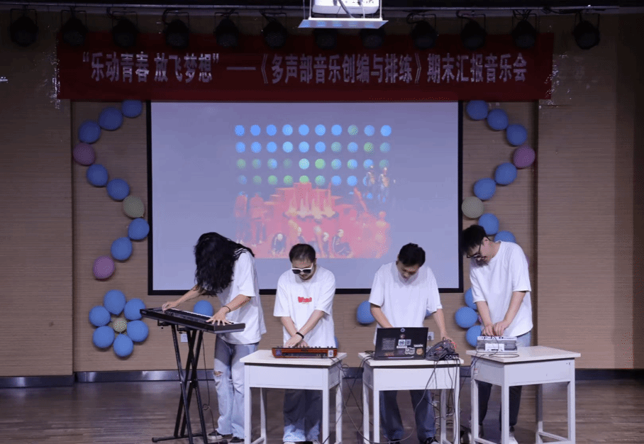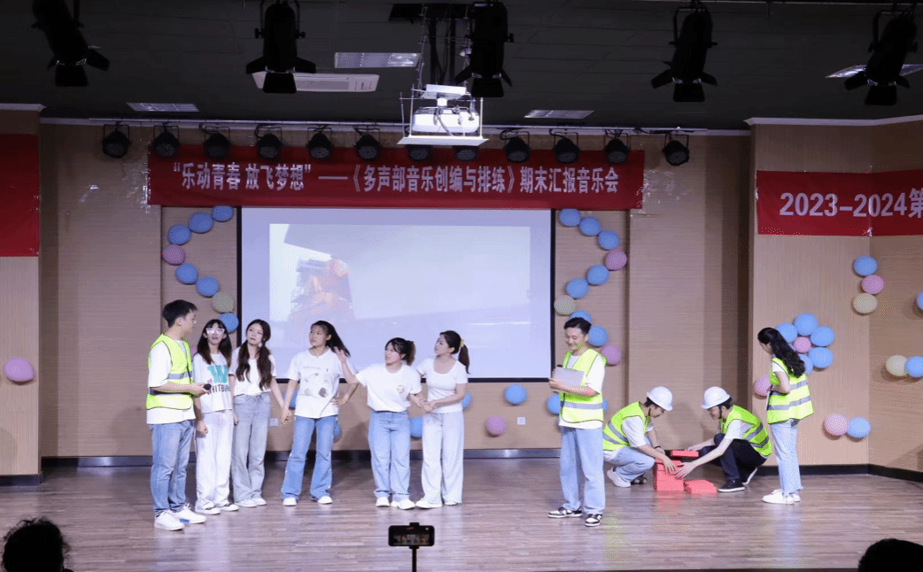 进入篇章三“诗画人间”,民乐四重奏所改编的《克罗地亚狂想曲》,将西方跨界钢琴音乐呈现出中国风效果,别具一格。三重唱改编的动画片《疯狂动物城》主题曲《Try Everything》则以其耳熟能详的动人旋律和深情演唱,让观众仿佛置身于电影中的奇幻世界。篇章四“岁月留声”加强思政元素融入音乐情景短剧《桥梁》和《梦想》,歌曲词曲创作皆出自学生的原创。《桥梁》致敬共建“一带一路”所有的参与者与建设者;《梦想》向观众讲述了关于音乐生追梦与成长的故事,感人至深。