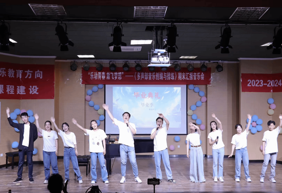 本场音乐会依托全国艺术专业学位研究生教育指导委员会于2022年4月公布的“艺术硕士音乐教育方向研究生协作类核心示例课程:《综合即兴创编》(艺教指委[2022]4号)”,进行课程建设成果汇报,课程负责人为音乐教育系副主任林沛蕾老师。课程建设两年多来,研究生团队深入中小学教学一线,以创新实践、音乐协作能力、音乐活动组织能力提升为核心,探索与开展多元化的音乐教学与活动设计与创编。音乐硕2201全体学生充分发挥各专业优势,将音乐理论与实践紧密结合,探索新课标下音乐教育新模式的可行性。《多声部音乐创编与排练》由音乐教育系担任合唱教学的田浩老师所带领,聚焦培养中小学音乐教师所需具备的合唱改编与排练能力。