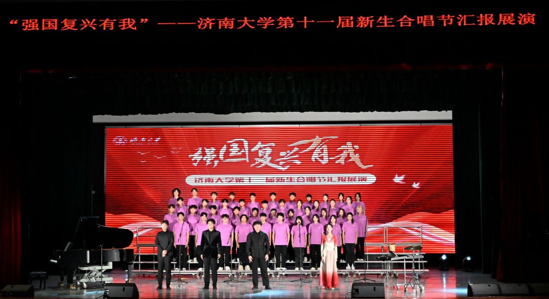 的表演赢得了评委和观众的一致好评。同学们的歌声激昂而深情,舞蹈动作整齐划一,器乐伴奏与歌声完美融合,共同营造出了一种庄重而又充满活力的氛围。通过这次活动,同学们不仅在艺术上得到了锻炼和提升,更深刻理解了作为新时代青年的责任和担当。