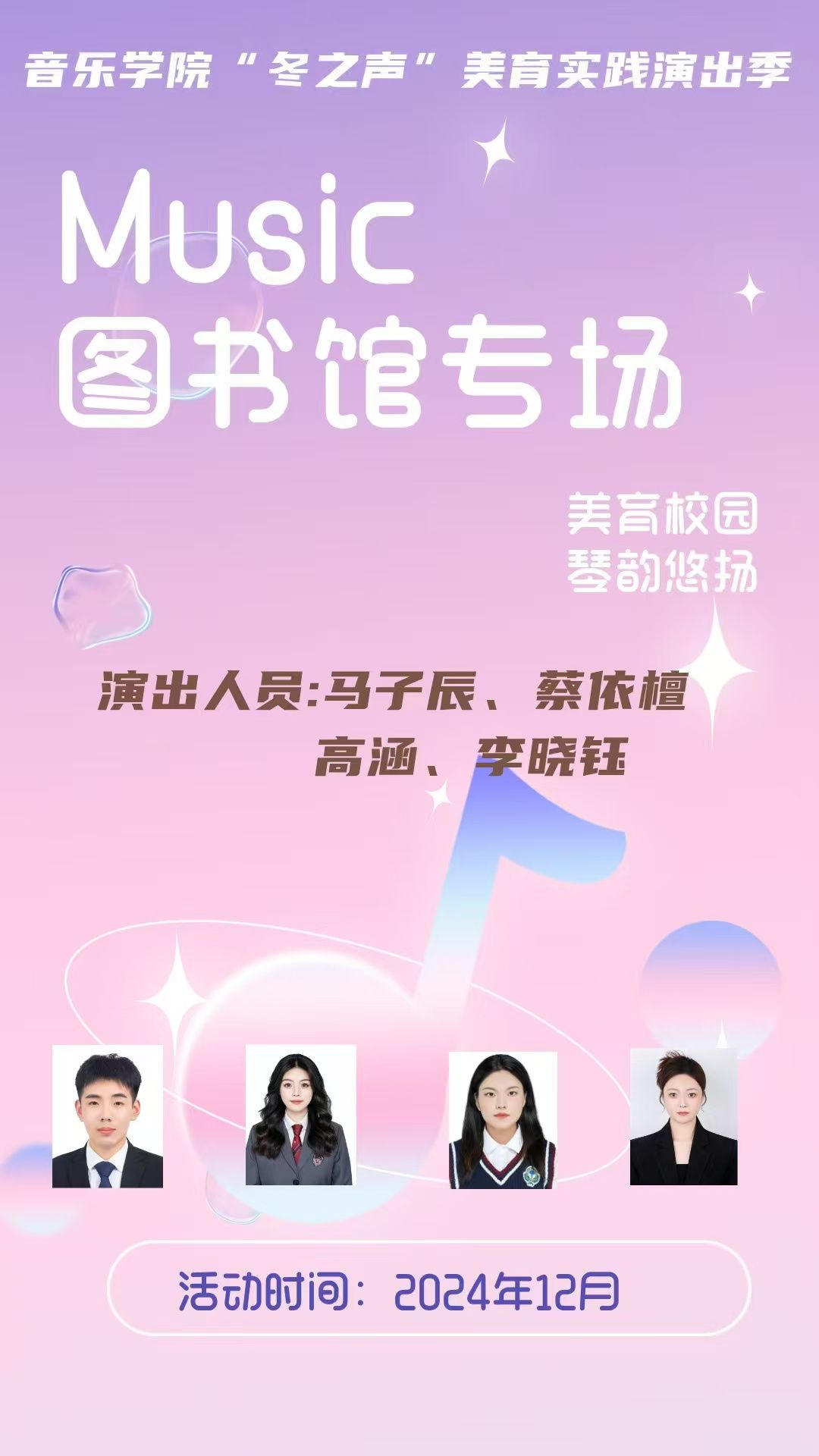 “冬之声”美育实践演出季——图书馆专场,今晚即将精彩绽放。