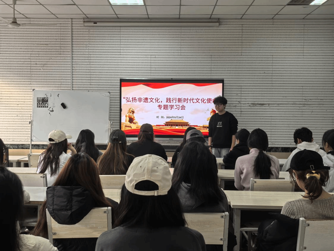 召开“弘扬非遗文化,践行新时代文化使命”专题学习会,会议由院学生会团学部部长赵浚屹主持,学院部分团员与青年干部参会。
