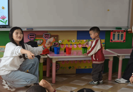 活动通过寓教于乐的形式展开。志愿者们以生动有趣的环保故事开场,结合动作舞蹈带领孩子们学唱环保儿歌,在轻松互动中传递保护环境的重要性。随后,志愿者李帅豪向小朋友们讲解有害垃圾的分类知识,解小雨则组织“四色垃圾桶”垃圾分类比赛。孩子们在游戏中热情参与,通过实践快速掌握了垃圾分类的基本方法,现场欢声笑语不断。