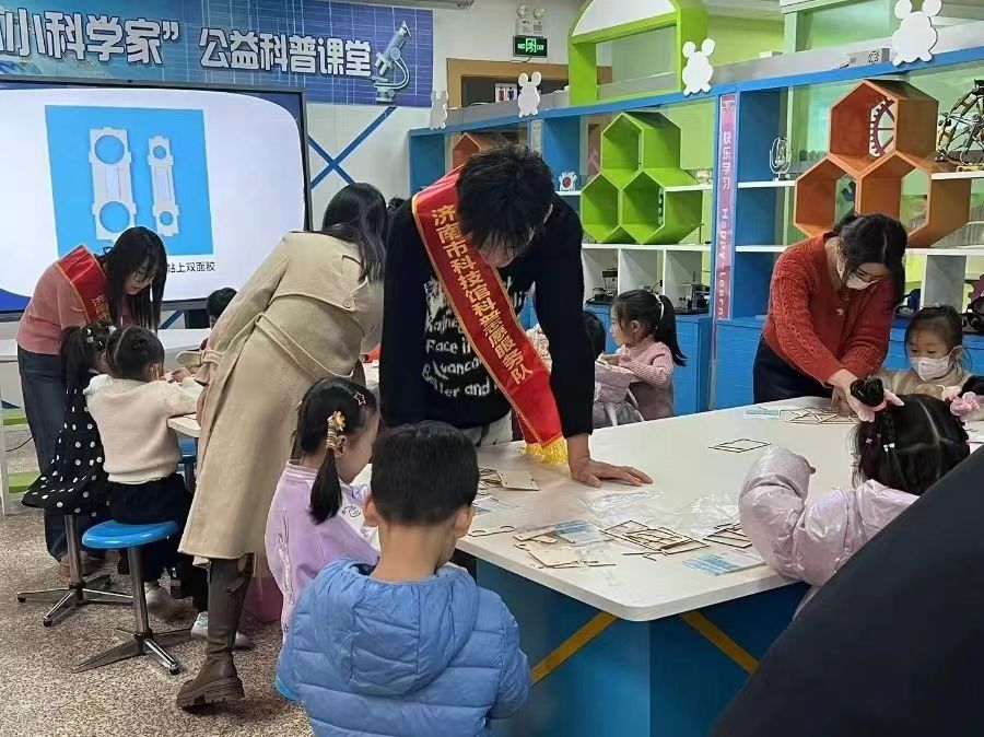 向日葵服务队致力于推动社区儿童科学教育的发展,为英雄山周边社区的4至7岁儿童带来丰富的科学实践体验。在活动期间,志愿者们不仅指导孩子们动手制作科技小作品,还详细讲解其中的科学原理,并举例说明这些原理在日常生活中的应用。通过这样的互动与实践,引导小朋友们深刻体会科学与生活的紧密相连,让他们在亲身参与中感受科学的独特魅力。